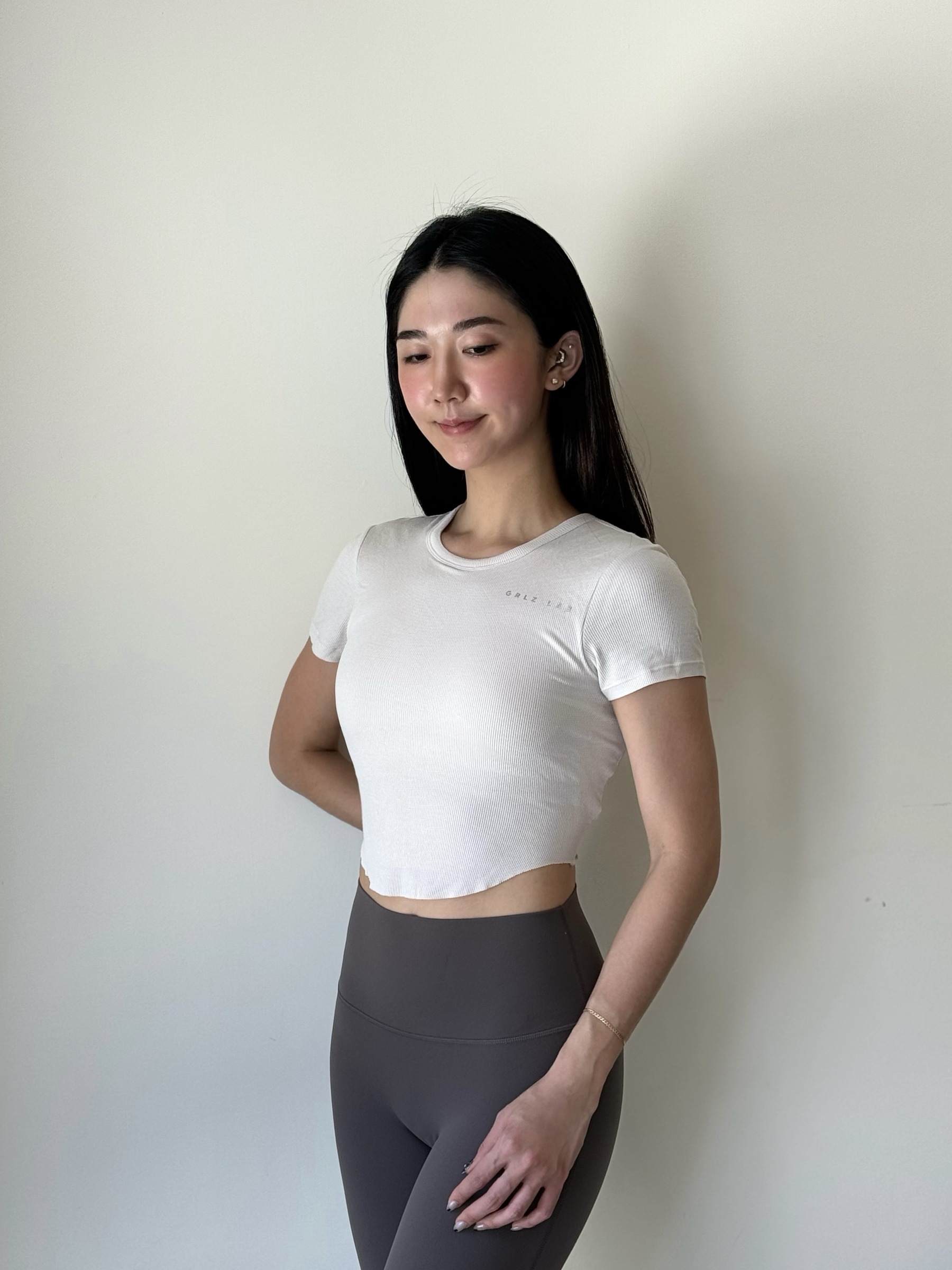 羅紋圓弧短袖 - 麻灰(有胸墊)